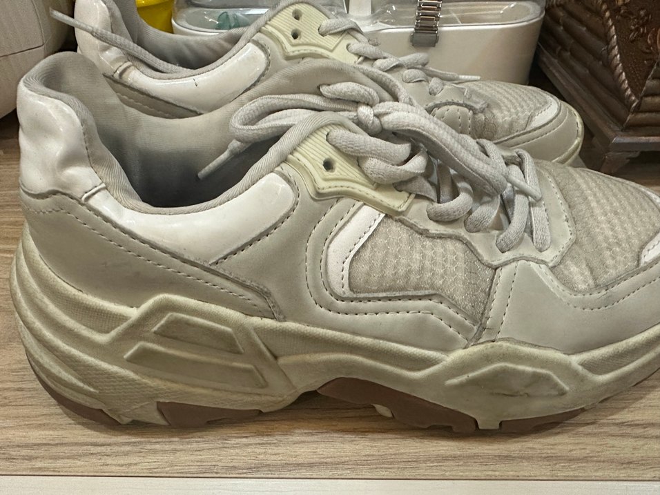 Beyaz renkli, bağcıklı ve platform topuklu kadın spor ayakkabısı. Düz ve desensiz tasarımıyla spor ve sokak stiline uygundur.