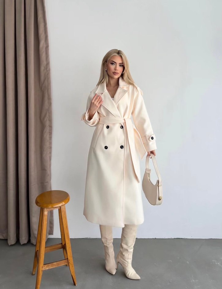 Kadın Beyaz Süet Uzun Kesim kaşe kaban