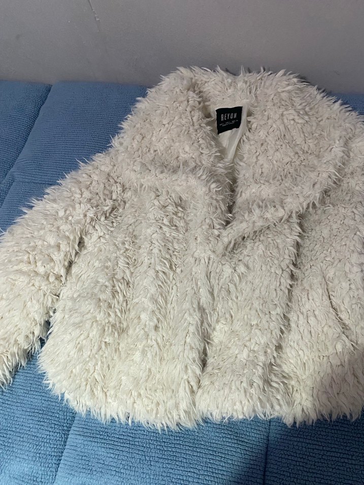 Kadın Beyaz Suni Kürk Midi Ceket