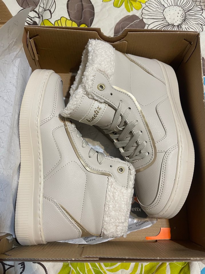 Kadın beyaz dolgu topuk bot, yumuşak ve sıcak suni kürk astar ve cırt cırtlı kapanış ile dayanıklı kauçuk malzemeden üretilmiştir. Sıfır etiketli hiç kullanılmamış 37 numara