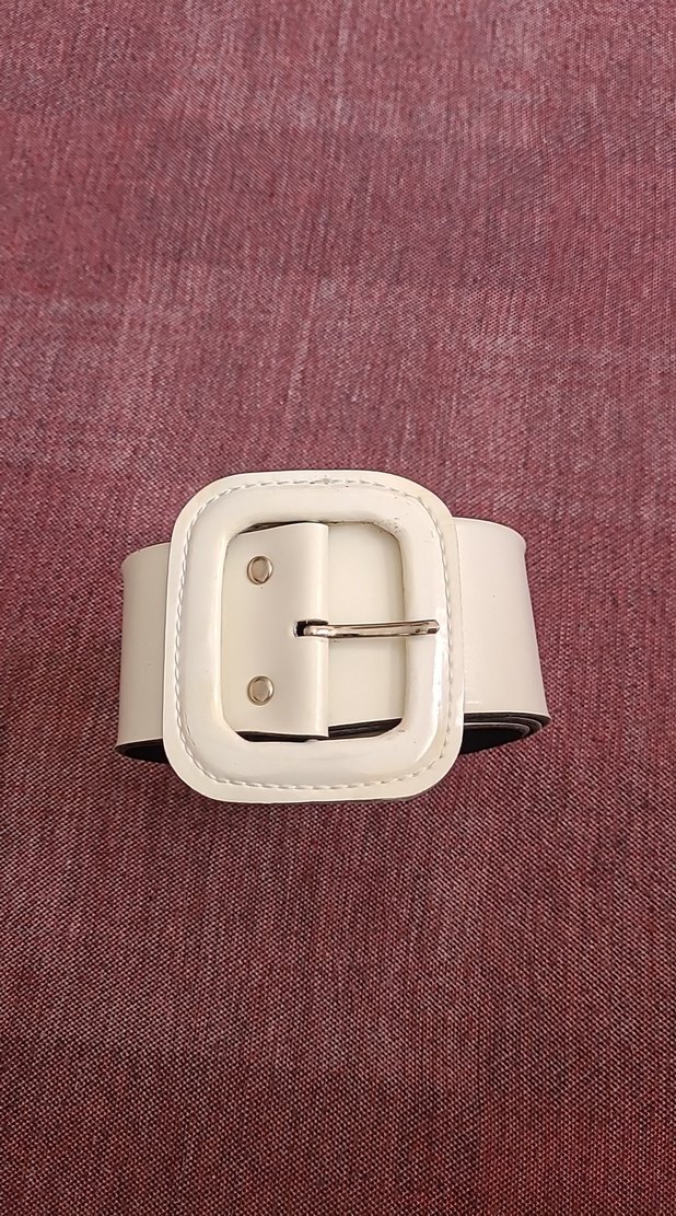 Geniş tasarımlı, büyük tokalı beyaz kadın kemeri, vintage Paris tarzı kontrakültür stilini yansıtıyor. ⚡