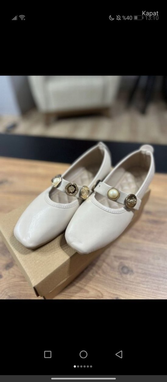 Kadın Beyaz Tokalı Modern Klasik Topuklu Babet