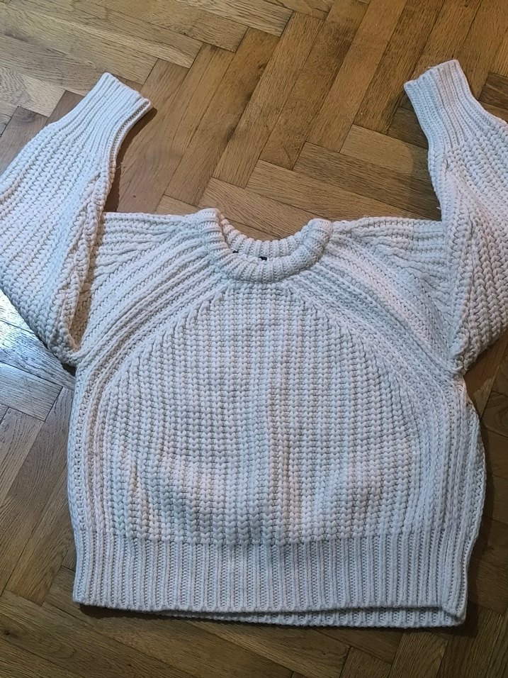 sadece arka omzunda küçük bir yırtık var etiketi yırtık markasını bilmiyorum s-m muhtemelen rengi kreme yakın