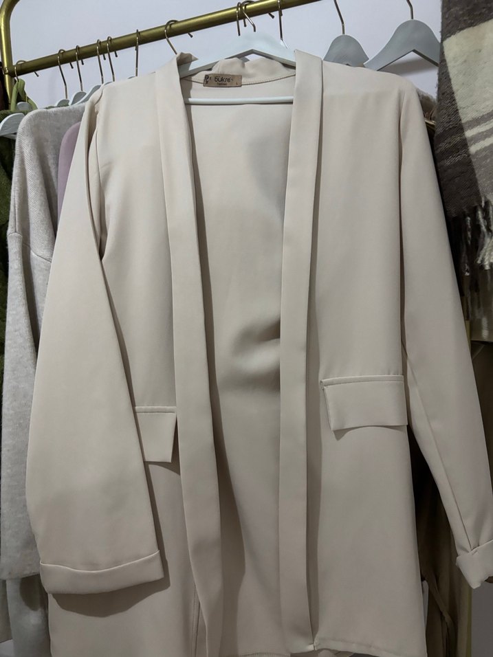 Kadın Beyaz Uzun Kesim Blazer Ceket