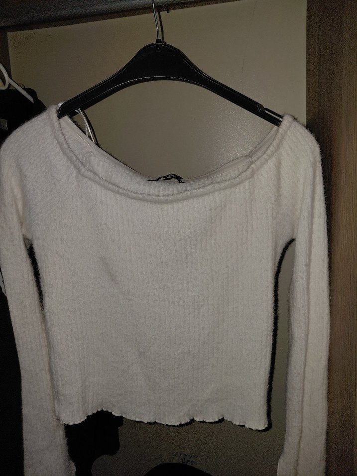 Kadınlar için beyaz triko, kayık yaka ve uzun kollu, rahat ve şık pamuk gibi yumuşacık bir kumaşı vardır. M beden LCW