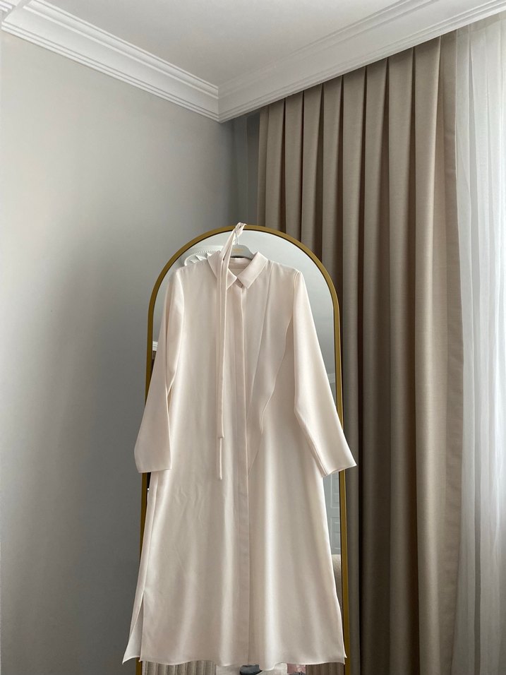 Kadın Beyaz Uzun Kollu Dökümlü Tunik