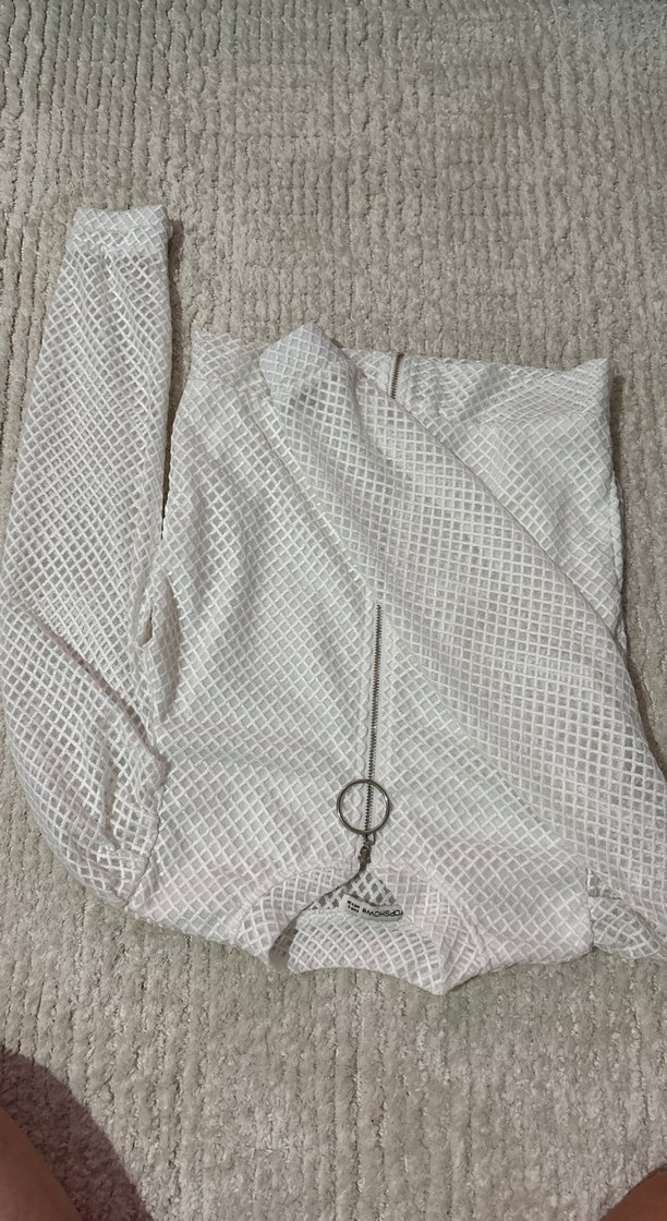 Kadın Beyaz Uzun Kollu Fermuarlı ceket