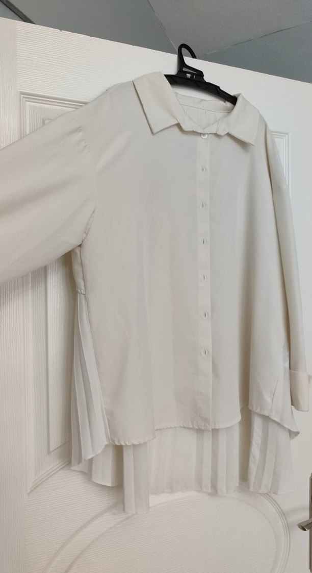 arkası beyaz önü daha sarımtırak bej renginde arkasında transparan kumaş var hiç giyilmedi kusuru yok shein ürünü salaş bri gömlek L ve XL bedenlere uygun