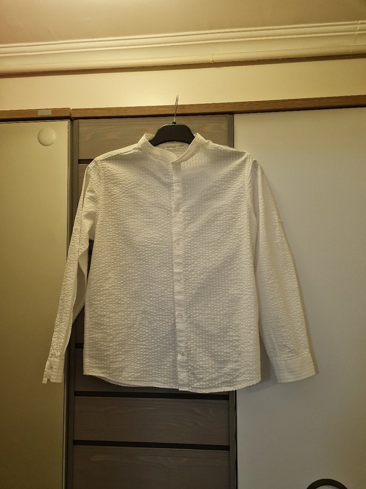 Düğmeli, yakalı, uzun kollu beyaz keten gömlek, normal boy ve regular fit kesime sahip, sade tasarım.defacto10/11yaş