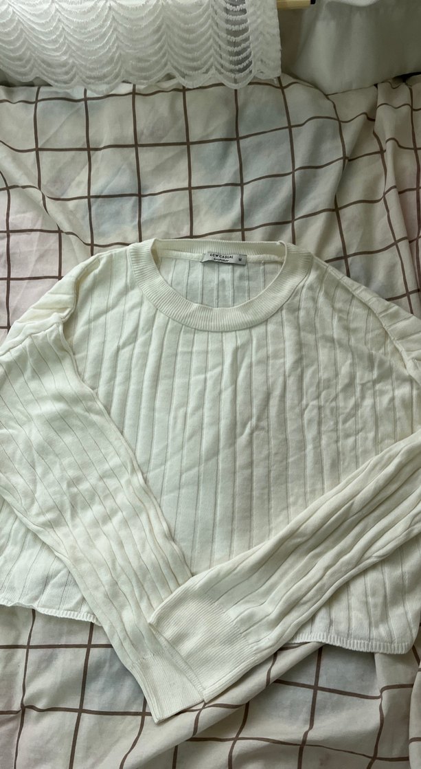 Kadınlar için uzun kollu, yuvarlak yakalı keten kumaştan yapılmış beyaz, salaş kesim ve pileli detaylara sahip kazak. Günlük kullanım için rahat bir seçim.