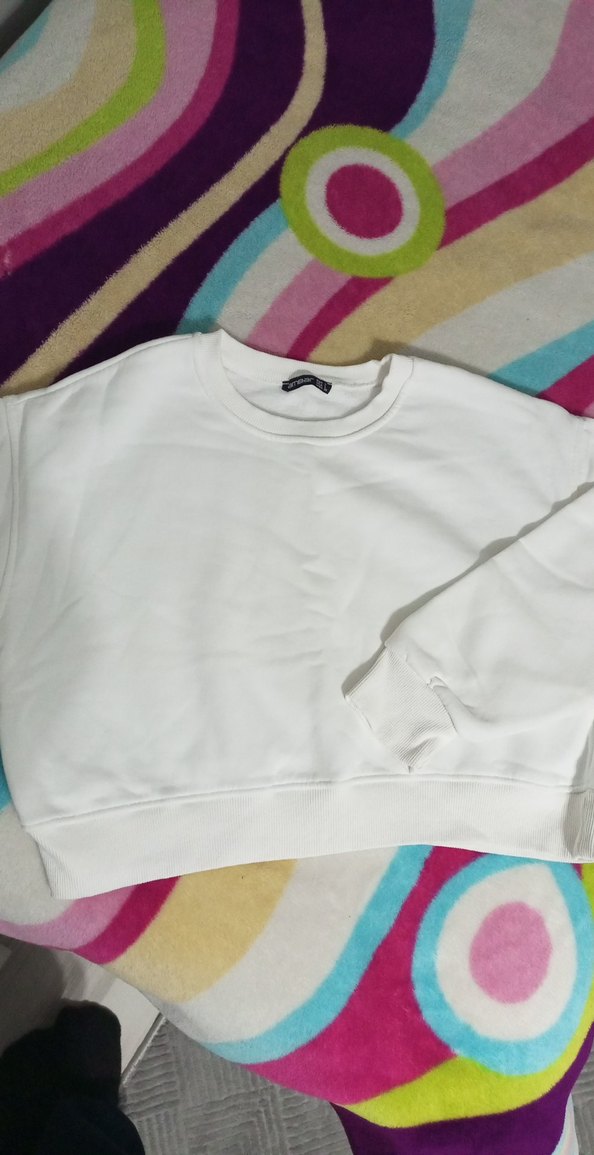 Kadın Beyaz Uzun Kollu Kısa Sweatshirt