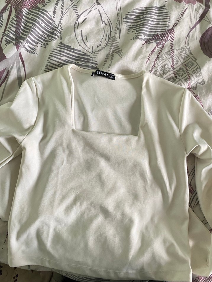 Pamuklu kumaştan, beyaz ve uzun kollu, fit kesim kadın tişörtü. Minimalist tasarımı ve midi boyuyla günlük sokak stiline uygundur.