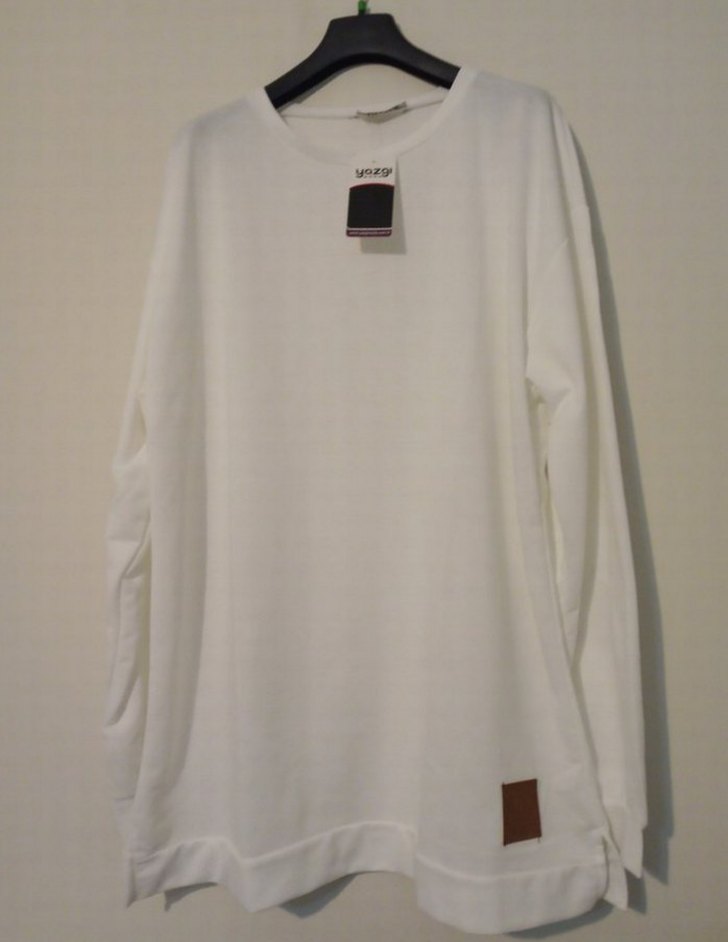 Kadınlar için uzun kollu, yuvarlak yakalı ve salaş kesime sahip beyaz sweatshirt. Yumuşak ve sıcak kumaştan, günlük sokak stiline uygun.