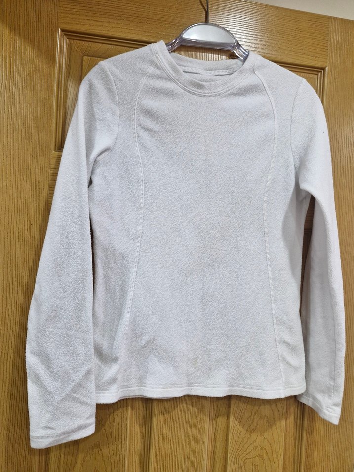 Kadınlar için beyaz, uzun kollu ve bisiklet yaka, yumuşak ve sıcak kumaştan yapılmış dar kesim sweatshirt. 38 bedendir. Minimalist, düz tasarımıyla günlük sokak stili için uygundur. ☁️
