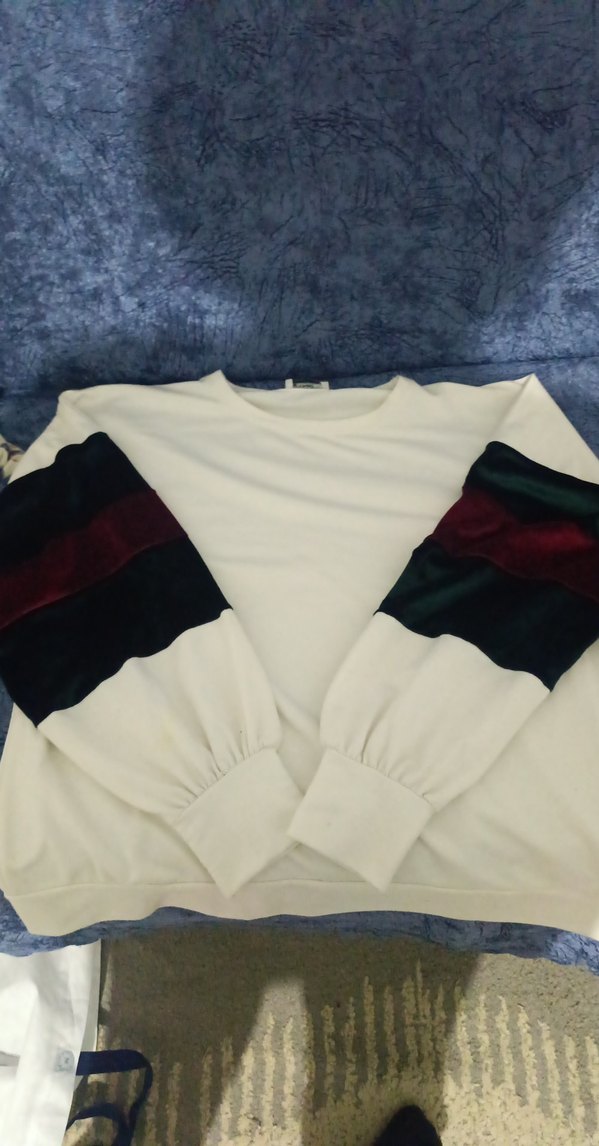 Beyaz, uzun kollu, bisiklet yaka sweatshirt. Kollarında pileli detaylar bulunur. Rahat, bol kesim ve yumuşak kumaştan yapılmıştır. Günlük kullanım için uygundur.