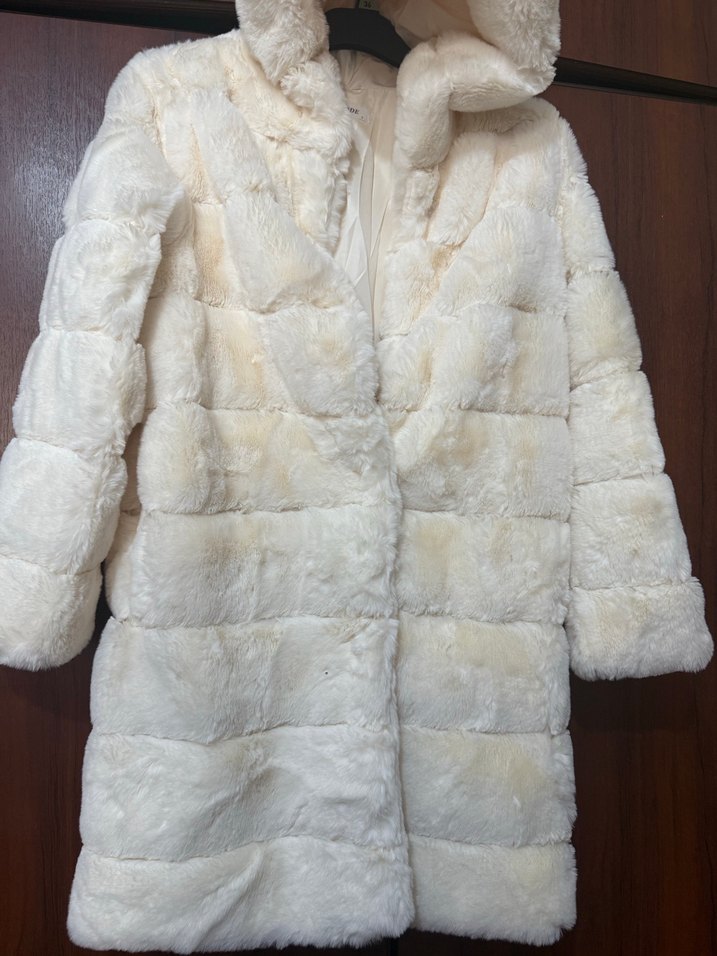 Beyaz uzun kesim, kürk detaylı ve yaka kısmı kesik yakalı, şık ve rahat bir kadın ceketi.Kapüşonlu(büyük kapşon)Yurt dışında kendi mağazamız vardı.Kapatıldığı için kalan ürünleri burdan satıyorum .Fazla kalmadı şu an elimde 3 beyaz ve 3 sütlü kahve rengi kaldı.Kaliteli ,yumuş yumuş ve üzerinizde çok hafif kalıyor.(Ben kendimde kullanıyorum)Yurt dışında (paris) fiyatı çok çok farklıydı.Ben yarı fiyatından az bir rakamla sizlere sunuyorum.Çok beğeneceksiniz gönül rahatlığla alabilirsiniz..Bu fiyata kaçırmayın derim..Yılbaşı öncesi fiyat indirimi yapıyorum.