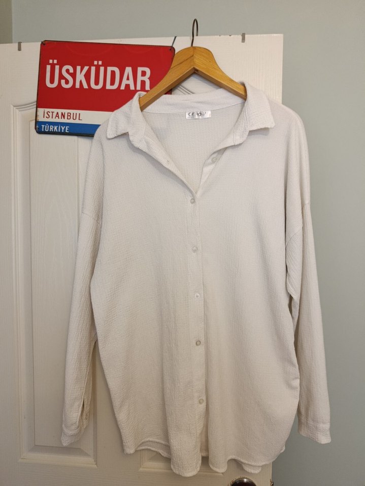 kadın beyaz tunik gömlek. uzun ve esnek dökümlü kumaş,standart bedendir. açık arkadaşlar yazın bikini üstüne, kapalı arkadaşlar da tunik olarak kullanabilir.