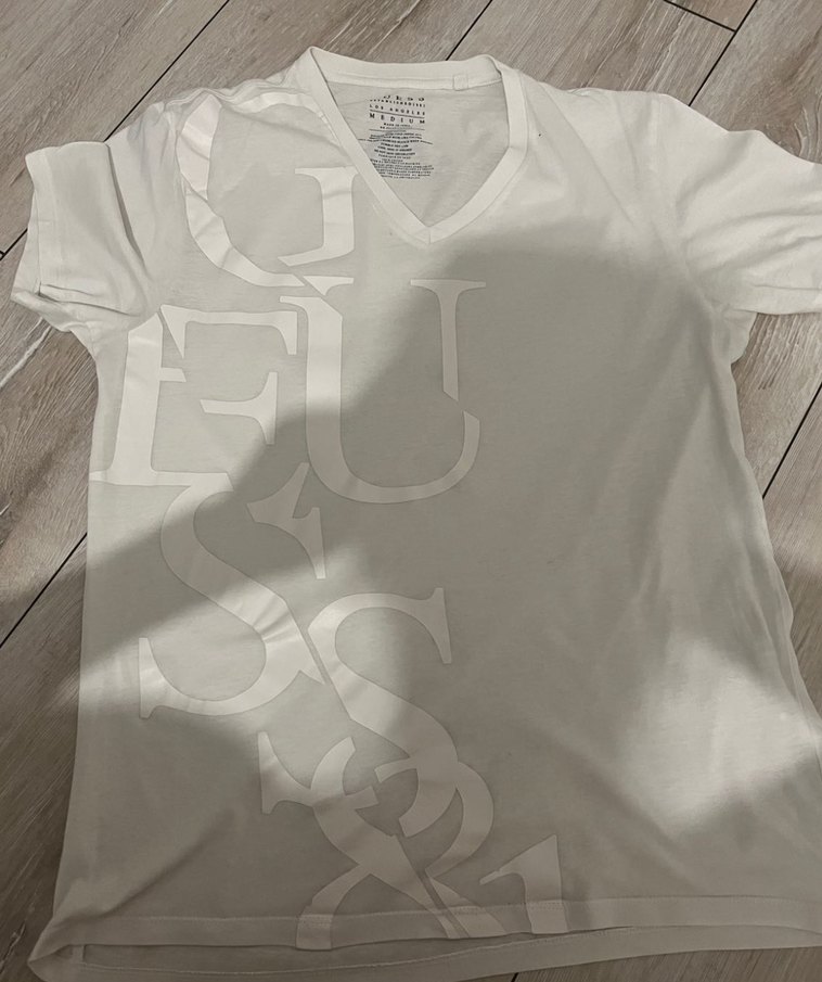 Kadın Beyaz V Yaka Baskılı Kısa Kollu Tişört