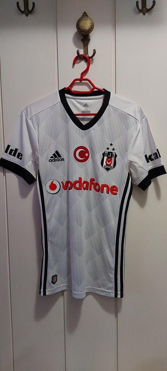V yaka, kısa kollu, sentetik kumaştan yapılmış, baskılı desenlere sahip, fitted kadin spor forması. Velcro detayları ve Vodafone, Ide logoları bulunur. Beyaz ve gri renkler athleisure tarzına uygundur.hic giyilmedi sıfır ürün sadece etiketi yok ⚽