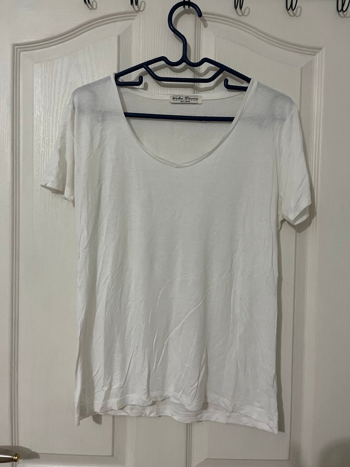 Kadın Beyaz V Yaka Kısa Kollu Tişört