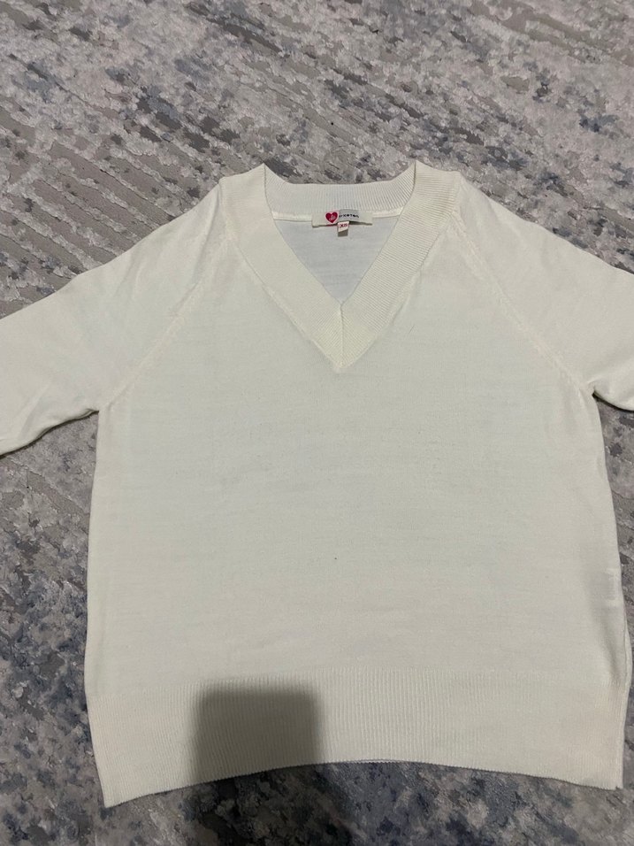 Kadın Beyaz V Yaka Pamuklu Triko Kazak