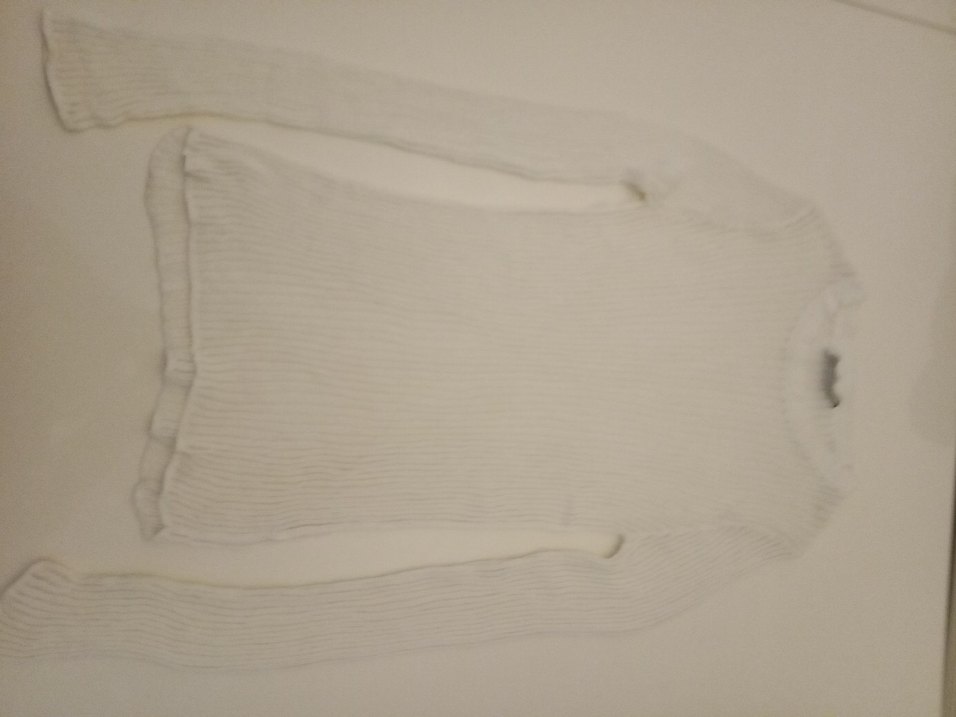 Kadınlar için v yaka, uzun kollu, dar kesim beyaz triko. Yumuşak sentetik kumaştan, yırtmaç detaylı, sade ve gündelik sokak stiline uygun.