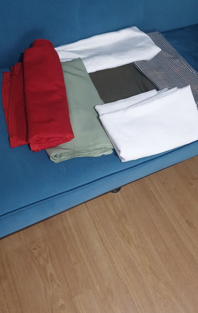 Kadınlar için beyaz renkte, dökümlü tasarıma sahip basic parça kumaşlar, yumuşak sentetik pamuklu .fiyatı hepsi için fiyatını giriyorum haki çift en 85 cm,beyaz ince çift en 2,5 metre, limon küfü çift en 1,60 beyaz şile bezi kumaş 1.20cm kırmızı perde fonundan artma tek en 3 metre hayırlı olsun