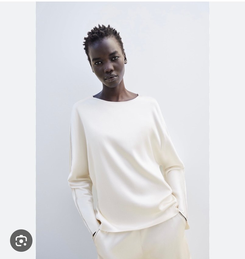 Online dan böyle etiketsiz ve etiketin bir tarafı kopuk gelmiştir. Kullanacağımı düşündüğüm için sorun etmedim. Kullanmadım. Sıfır üründür. Krem veya kirli beyaz renkte %97 viskoz kumaşıyla siyah dikiş detaylı kenarları açık iplik şık bluz. Boy 60 cm göğüs 48 cm. S bedendir.