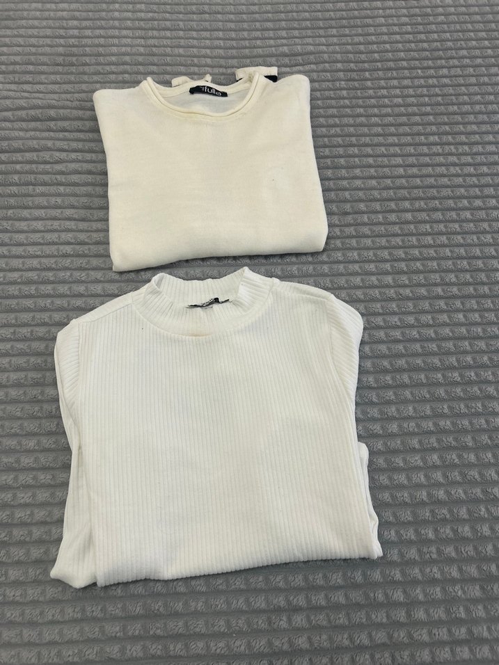 Yumuşak keten kumaştan, yarım balıkçı yaka ve uzun kollu, vücuda oturan beyaz triko. Minimalist ve sade tasarım, günlük kullanım için uygundur.