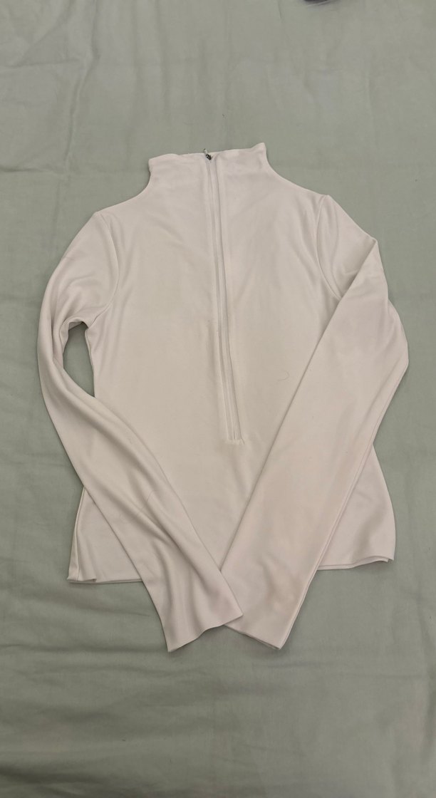 Kadınlar için yüksek yakalı, yarım fermuarlı ve uzun kollu dar kesim beyaz penye spora uygun Yumuşak ve sıcak kumaştan, günlük kullanım için uygundur.