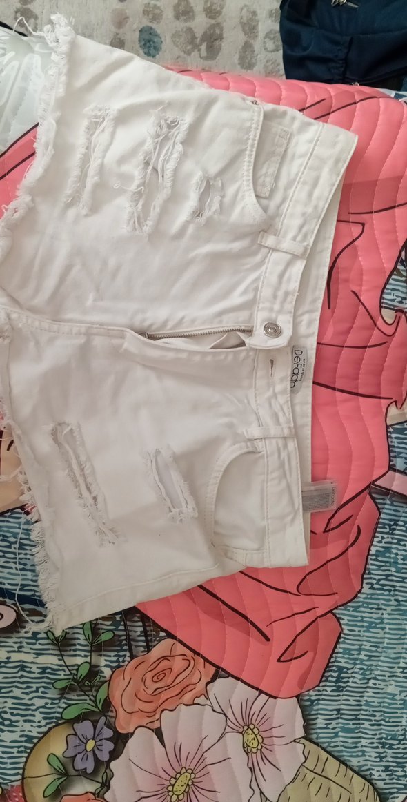 Beyaz, yırtık detaylı, bol kesim mini kot şort. Fermuar kapamalı, sokak stiline uygun rahat dış mekan şortu.