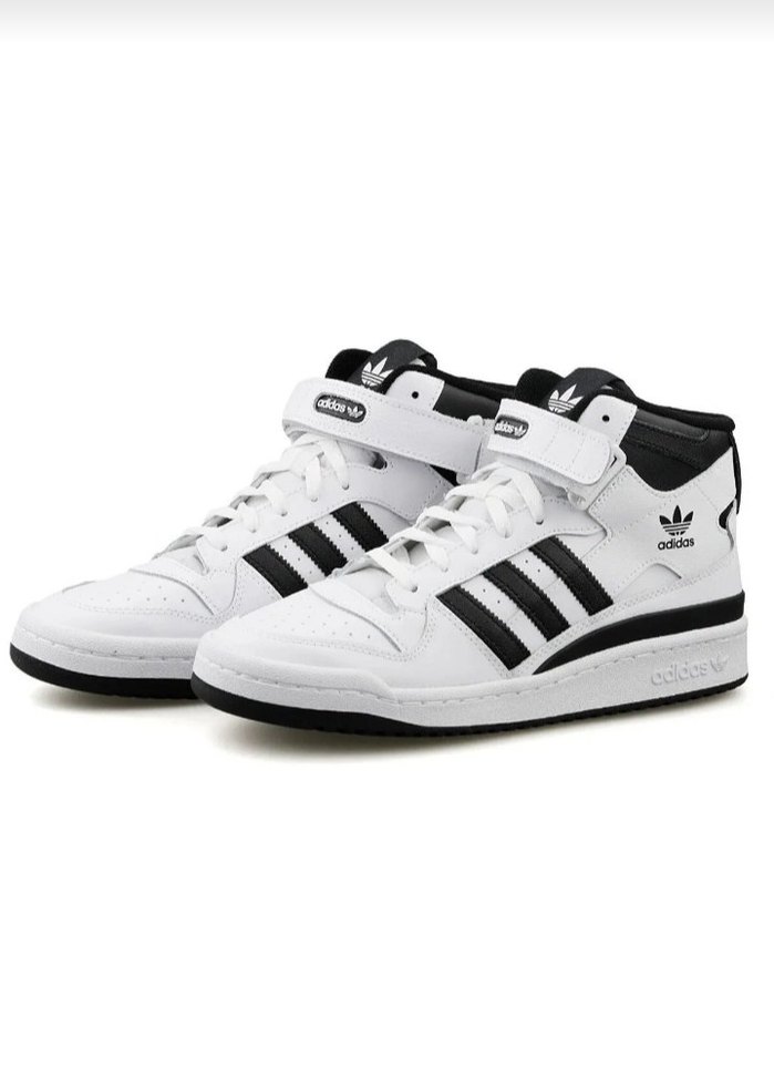Beyaz renkte, siyah baskılı çizgili, bağcıklı ve yüksek tabanlı kadın spor ayakkabısı, kauçuk tabanlı, sokak giyimi tarzında.