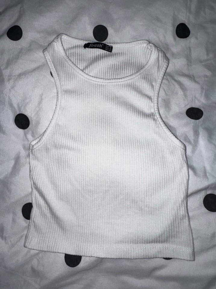 Yüksek yakalı ve vücuda oturan beyaz atlet, yumuşak sentetik kumaştan üretilmiştir. Minimalist ve şehir stili için uygundur. Alt kısmı sökük görsellerde yer almaktadır, yırtık vs yoktur. Dikiş yeri sökülmüştür.