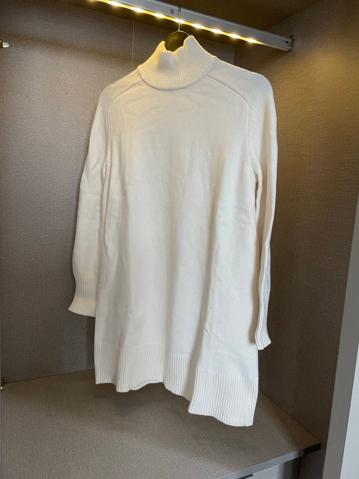 Beyaz renkli, yüksek yakalı ve uzun kollu kadın keten kazak. Örgü dokusu ve midi boyu ile rahat, sade ve günlük kullanıma uygun bir tasarım sunar. ❄️