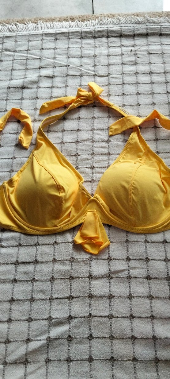 İp askılı, plaj için uygun kadın bikini, 2 üstü ve mavi renkli altı.