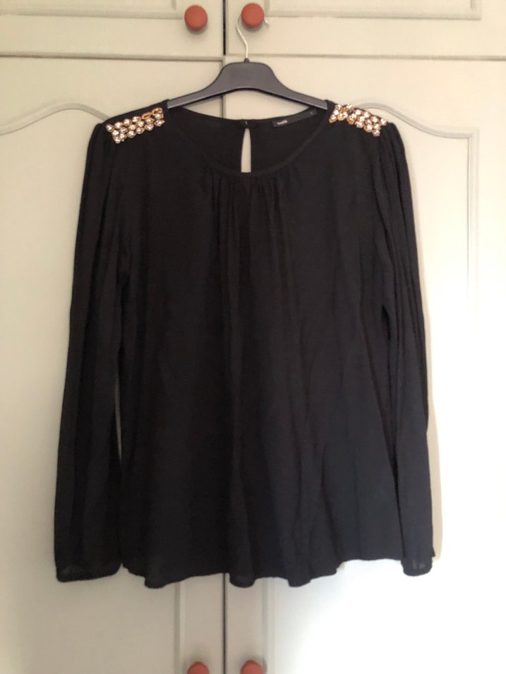 Çok şık bir bluz. Salaş ve rahat. Omuz boncuklarından 2 tanesi düşmüş fakat belli olmuyor. Kullanıma engel bir sorunu yok.