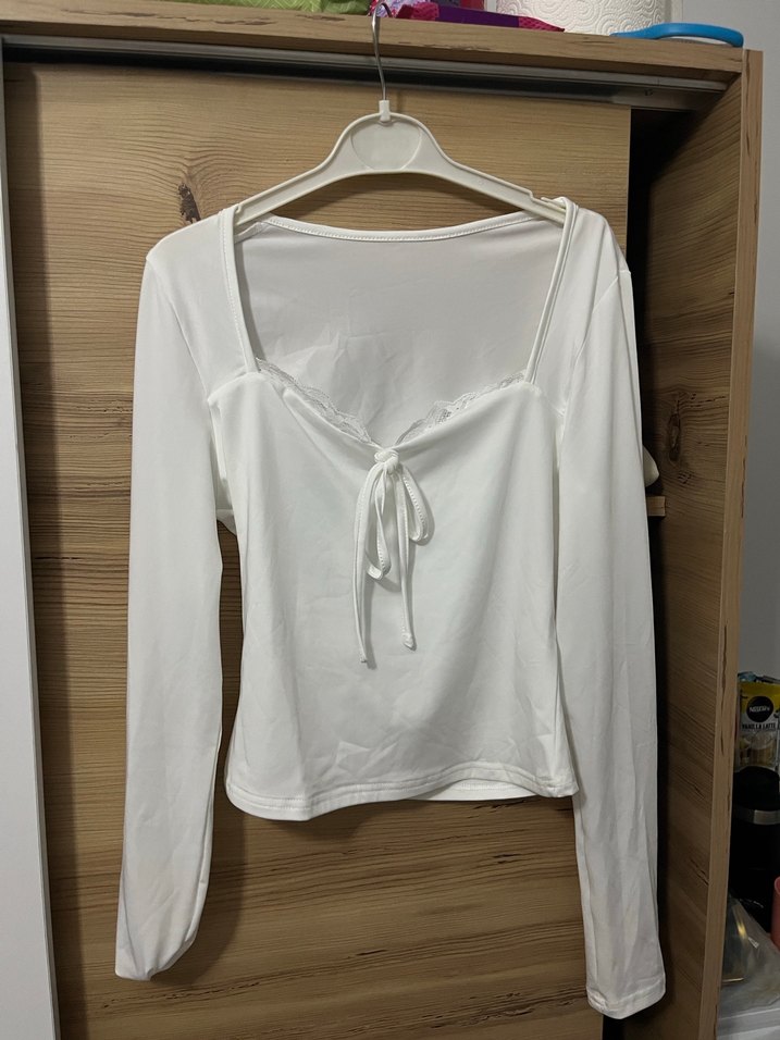 Yumuşak keten kumaştan yapılmış, uzun kollu ve V yakalı beyaz bluz. Önünde zarif bir bağlama detayı bulunur. Günlük kullanıma uygun, minimal ve şık bir tasarım. hic giyilmedi