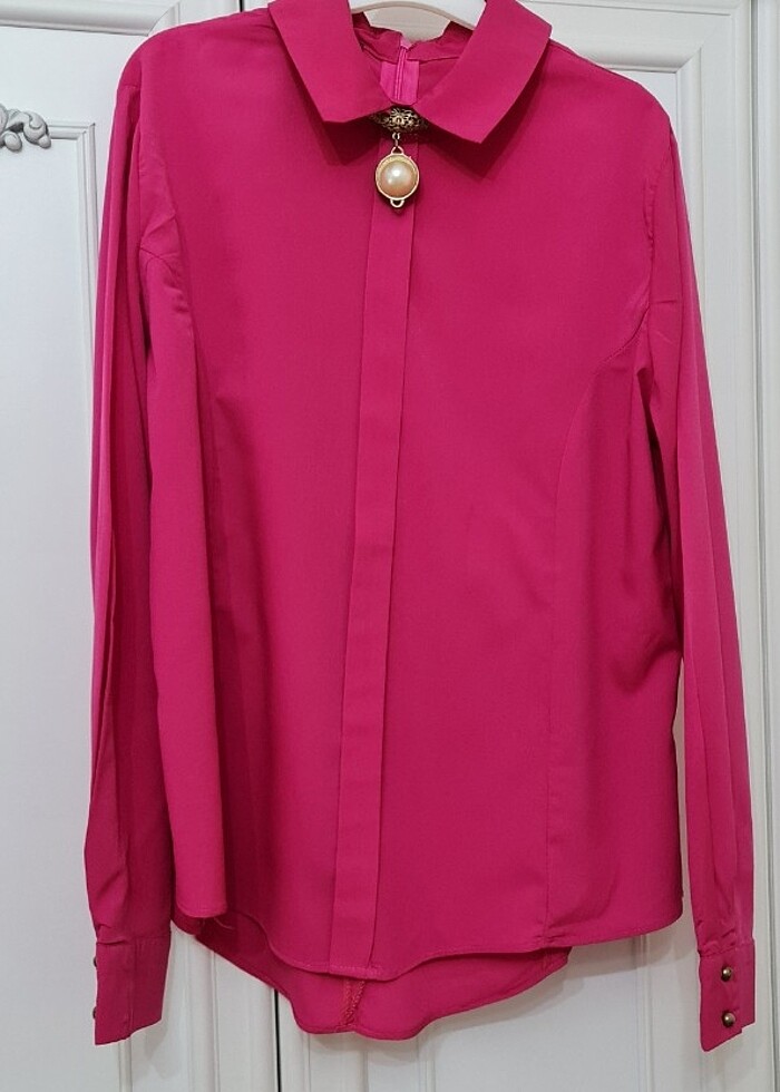 Uzun kollu broş detaylı oldukça şık bir bluz. Çok iyi durumda.
