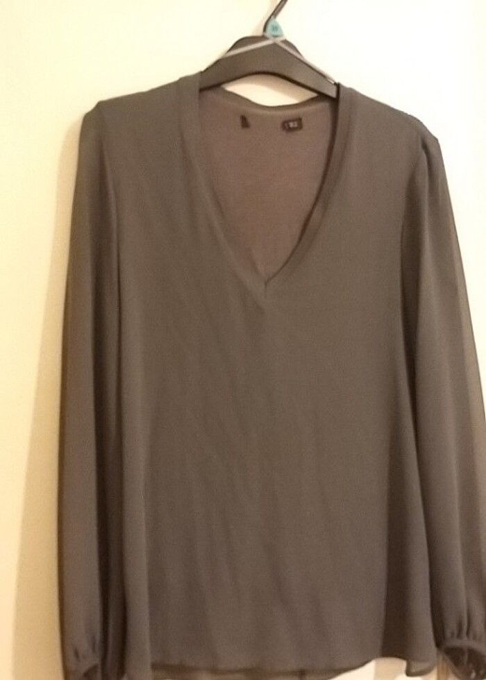 Gri renkli, S beden fakat L bedene kadar olur esnek bir yapısı var. Kolları tül, iç astarı mevcut, sadece 2 kere giyildi, temiz ve sorunsuz bir bluz.
