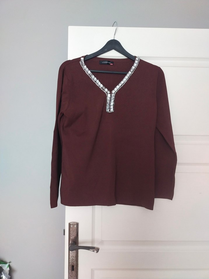 l xl kadın bluz renkli, parlak süslemeli V yakalı triko bluz, uzun kollu ve bol kesimdir. Günlük ve sokak stiline uygundur. ✨