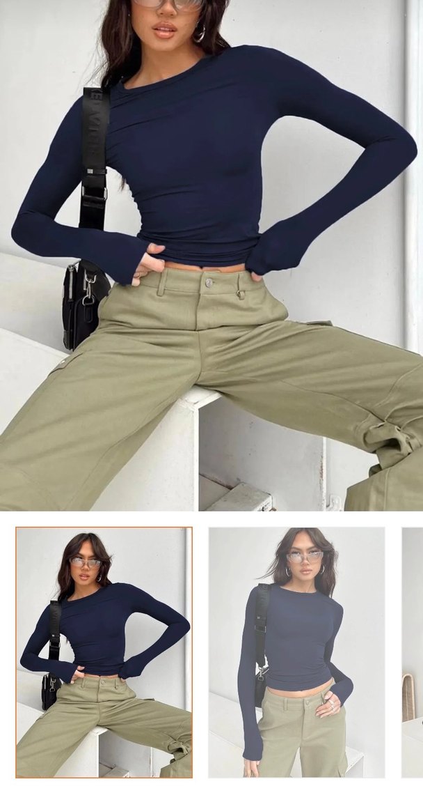 Dar kesim uzun kollu kadın bluz, rahat sentetik kumaştan, lacivert renginde. Günlük kullanıma uygun sorunu yok temiz