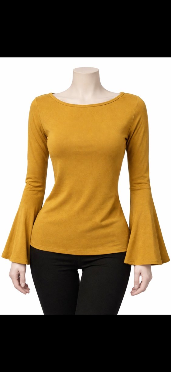 Sarı süet kumaştan, yuvarlak yakalı ve uzun, geniş kollu kadın bluz. Dar kesim ve parlak yüzeyli, ofis için şık ve rahat bir seçim. ✨