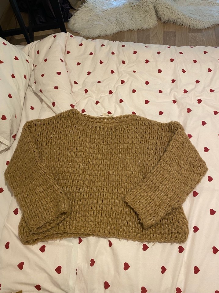 Hafif kahverengi, uzun kollu, tek renk örgü kadın kazak. Boğaz kesimli, bol ve rahat kesimiyle günlük kullanım için uygundur. Fazla giymedi Defoermesi yok