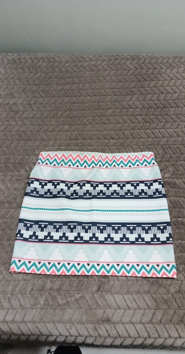 Sentetik kumaştan yapılmış, tüylü detaylı ve çok renkli desenli, bohem tarzda kadın mini etek. Rahat ve kısa kesimdir.