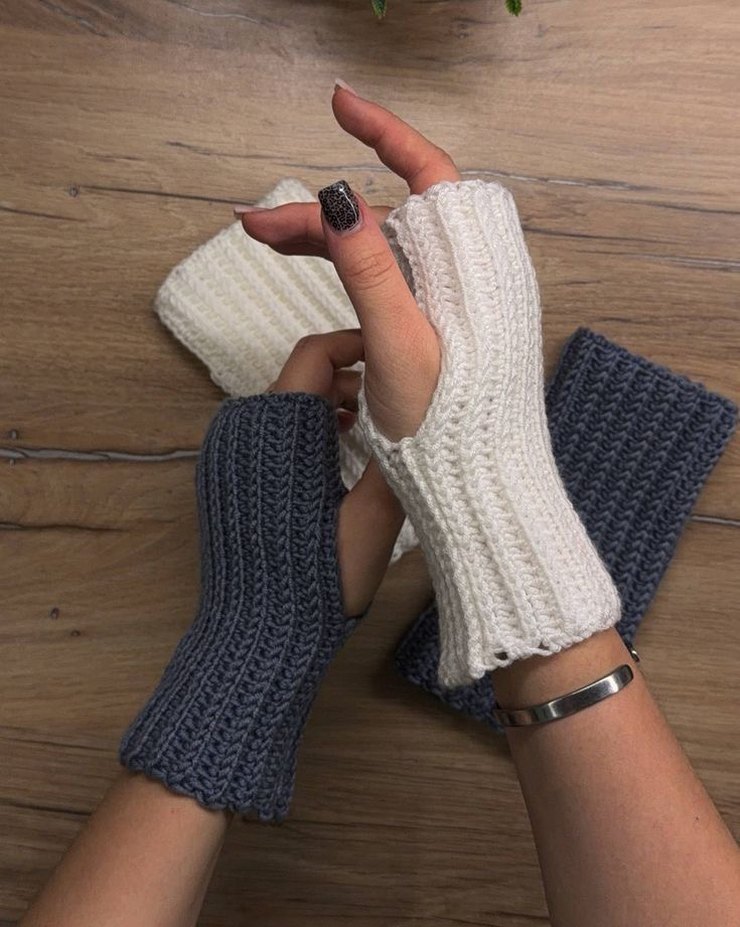 BU İLANI SATIN ALMAYIN YENİ İLAN AÇIYORUM İKİ GÜN İÇİNDE KARGO Yumuşak örgü kumaştan yapılmış, beyaz ve gri renklerde kadın parmaksız eldivenler. Rahat ve bohem tarz sunar.
