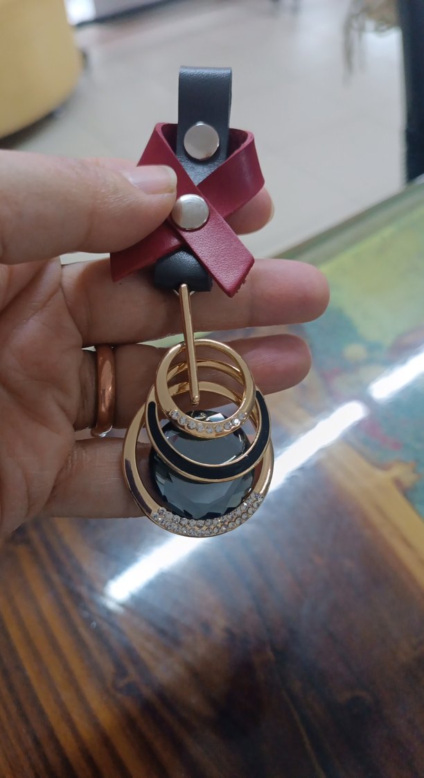 Kadın anahtarlık, altın renkli ve bohem püskül detaylarına sahip, koyu renk vurgularla minimal ve avangart tarzı bir araya getiriyor.
