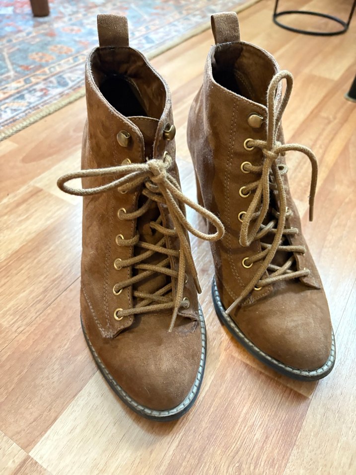 Kahverengi süet kadın botları, dolgu topuklu ve tokalı detaylara sahip. Vintage esintili, desen içermeyen bu botlar, bohem ve trend tarzlar için uygundur.