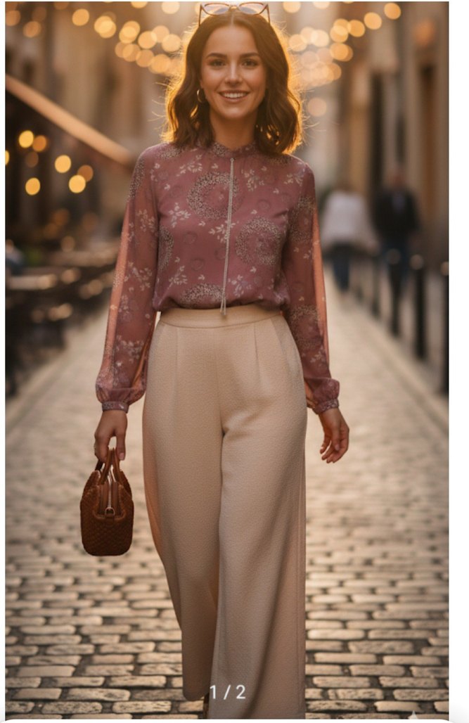 Kadınlar için uzun kollu, yüksek yakalı, bol kesim, pastel bej renginde ve ipeksi dokuda bohem tarzda bir tuniktir.