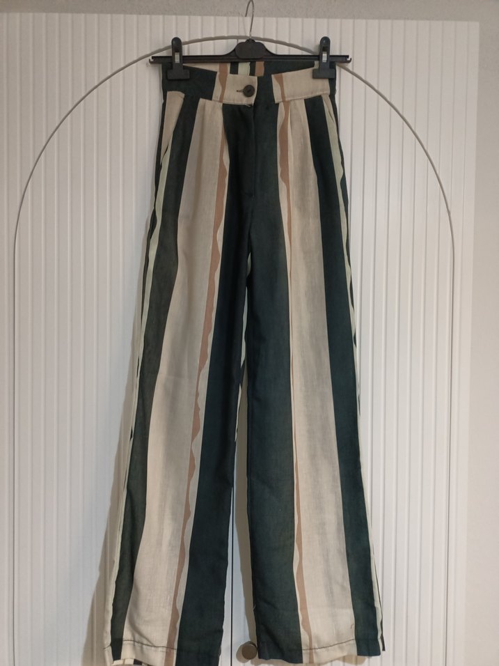 Uzun bol paça, hiç giyilmedi. 52 kiloyum belden biraz sıkıyor. Esnek kumaş değil.