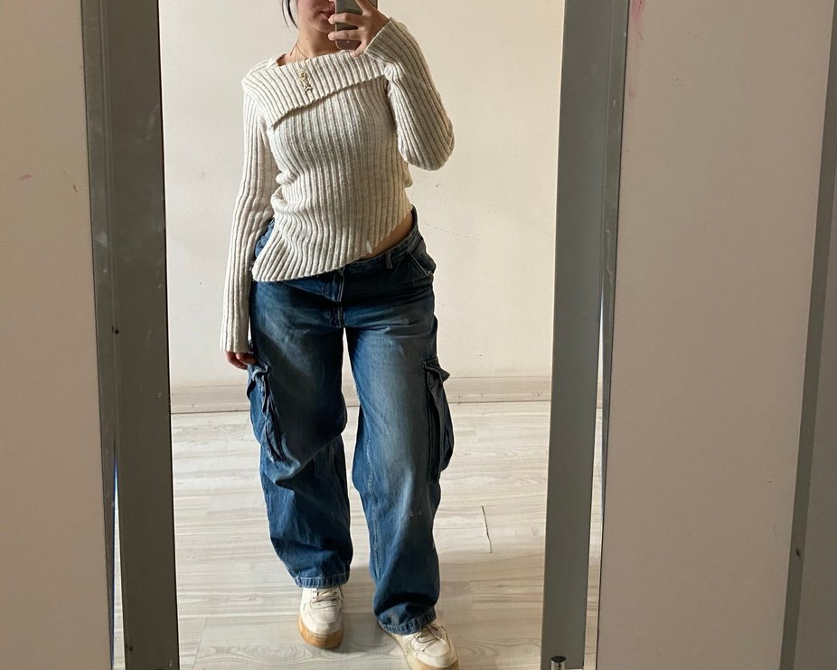 Bershka lacivert bol kesim normal midi uzunluğunda denim pantolon. Günlük kullanıma uygun, rahat ve salaş sokak stili için ideal.